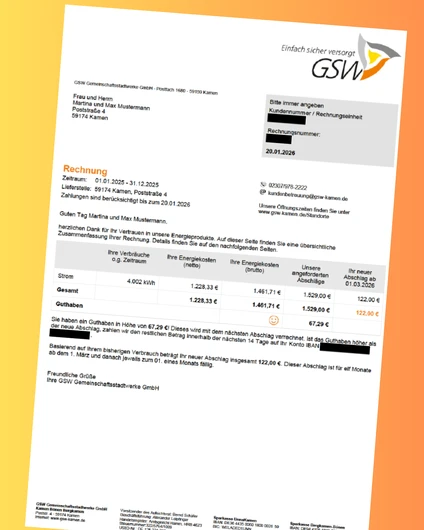 „In der Vergangenheit haben uns viele Fragen zur Jahresendabrechnung erreicht. Deshalb war es uns wichtig, die Rechnung einfacher zu gestalten. Die Berechnungsdetails sind oft komplex und sind natürlich weiterhin in der Rechnung zu finden. Die wichtigsten Informationen – ob ein Guthaben oder eine Forderung vorliegt sowie der neue Abschlagsbetrag – finden sich allerdings schon kompakt auf der ersten Seite der Rechnung“, sagt Carsten Wittig, Leiter der GSW-Kundencenter.